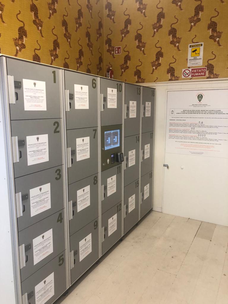 Our self-service luggage storage in Rome’s Monti neighborhood (located in Via degli Zingari, 51 B) offers automatic lockers, allowing you to easily store your bags and suitcases of any size. The facility is open 24 hours a day, 7 days a week, guaranteeing you access to your personal belongings at any time. Security is our priority: our secure lockers are made of sturdy metal, and the entire area is constantly monitored by a modern video surveillance system. Free yourself from the weight of your bags and enjoy your day with the peace of mind that your belongings are safe.